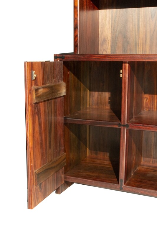 The piece features many hand-cut joints. It is made of east Indian rosewood.