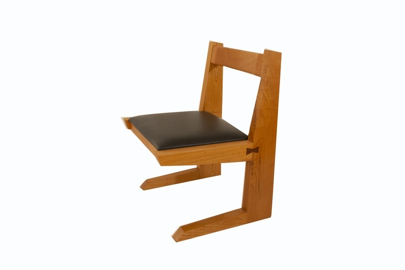 This chair features a cantilever design and leather seat. It is made out of white ash with leather accents.